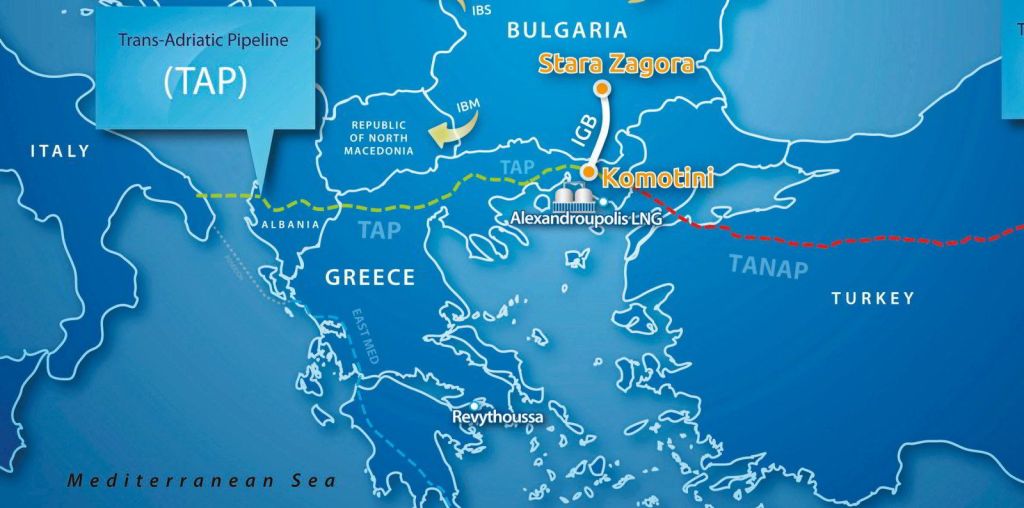 “The IGB connects Bulgaria with the Trans-Adriatic Pipeline (TAP) and allows the transport of natural gas from Azerbaijan via Greece to Italy and southeastern Europe.
